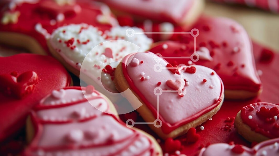 Υπάρχει δυνατότητα προσωποποίησης με δική σας φωτογραφία και προσαρμογής διαστάσεων κατόπιν παραγγελίας. Το συγεκεριμενο puzzle παρουσιαζει Αυτή η εικόνα δείχνει μια ομάδα μπισκότων σε σχήμα καρδιάς που έχουν διακοσμηθεί για την Ημέρα του Αγίου Βαλεντίνου. Στοιβάζονται το ένα πάνω στο άλλο, δημιουργώντας μια ελκυστική οθόνη. Τα μπισκότα είναι σχολαστικά διακοσμημένα με κόκκινα και λευκά παγάκια, ενώ στολίζονται κα
