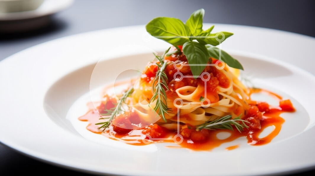 Υπάρχει δυνατότητα προσωποποίησης με δική σας φωτογραφία και προσαρμογής διαστάσεων κατόπιν παραγγελίας. Το συγεκεριμενο puzzle παρουσιαζει Η εικόνα δείχνει ένα όμορφα επιμεταλλωμένο πιάτο ζυμαρικών, κομψά τοποθετημένο σε λευκό πιάτο. Τα ζυμαρικά καλύπτονται με μια ζωντανή σάλτσα από φρέσκια ντομάτα και γαρνίρονται με ένα κλαδάκι φρέσκου βασιλικού και δεντρολίβανου, ενισχύοντας την οπτική τους γοητεία. Η παρουσίασ