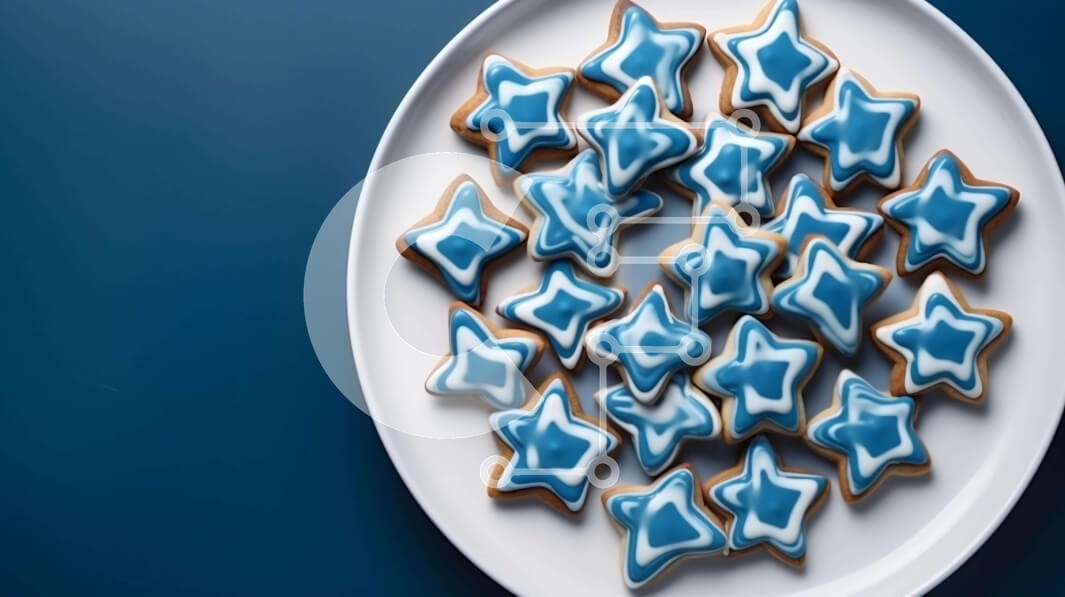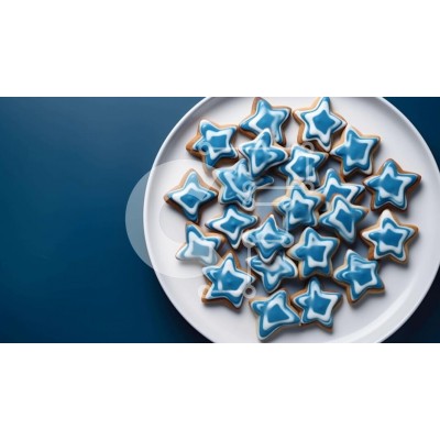 Υπάρχει δυνατότητα προσωποποίησης με δική σας φωτογραφία και προσαρμογής διαστάσεων κατόπιν παραγγελίας. Το συγεκεριμενο puzzle παρουσιαζει Αυτή η εικόνα δείχνει ένα λευκό πιάτο γεμάτο με μπλε παγωμένα μπισκότα σε σχήμα αστεριού. Τα μπισκότα τοποθετούνται σε πορτοκαλί φόντο, υποδεικνύοντας ότι μπορεί να έχουν διακοσμηθεί για τα Χριστούγεννα ή άλλες γιορτές. Υπάρχει επίσης κενός χώρος στο πιάτο, υποδηλώνοντας τη δυ