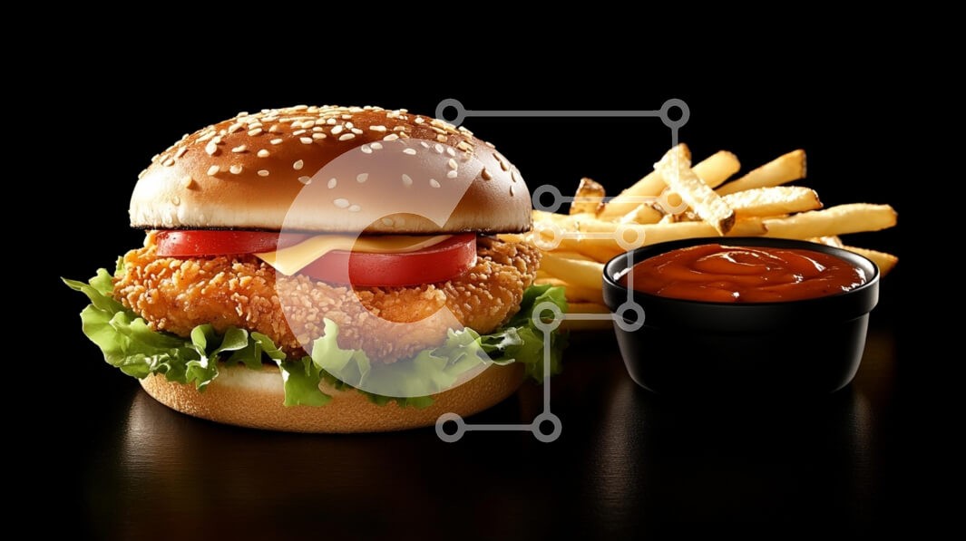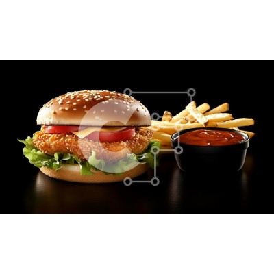 Υπάρχει δυνατότητα προσωποποίησης με δική σας φωτογραφία και προσαρμογής διαστάσεων κατόπιν παραγγελίας. Το συγεκεριμενο puzzle παρουσιαζει Αυτή η εικόνα παρουσιάζει ένα νόστιμο σάντουιτς κοτόπουλου συνοδευόμενο από χρυσές πατάτες και ένα μπολ κέτσαπ. Το σάντουιτς παρουσιάζεται σε σκούρο φόντο, τονίζοντας το ψωμάκι με σουσαμιού, το τραγανό τηγανητό φιλέτο κοτόπουλου, το φρέσκο μαρούλι, τις φέτες ντομάτας και το