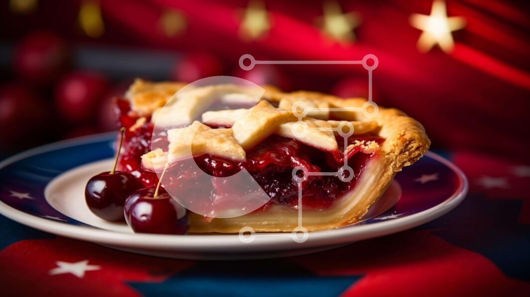 Υπάρχει δυνατότητα προσωποποίησης με δική σας φωτογραφία και προσαρμογής διαστάσεων κατόπιν παραγγελίας. Το συγεκεριμενο puzzle παρουσιαζει Η εικόνα δείχνει μια απολαυστική κερασόπιτα στολισμένη με κόκκινα, λευκά και μπλε διακοσμητικά. Είναι όμορφα τοποθετημένο σε ένα πιάτο, περιτριγυρισμένο από αστέρια, δημιουργώντας μια γιορτινή ατμόσφαιρα. Ένα μοναδικό puzzle που συνδυάζει ποιότητα, αισθητική και εμπειρία. Υλ