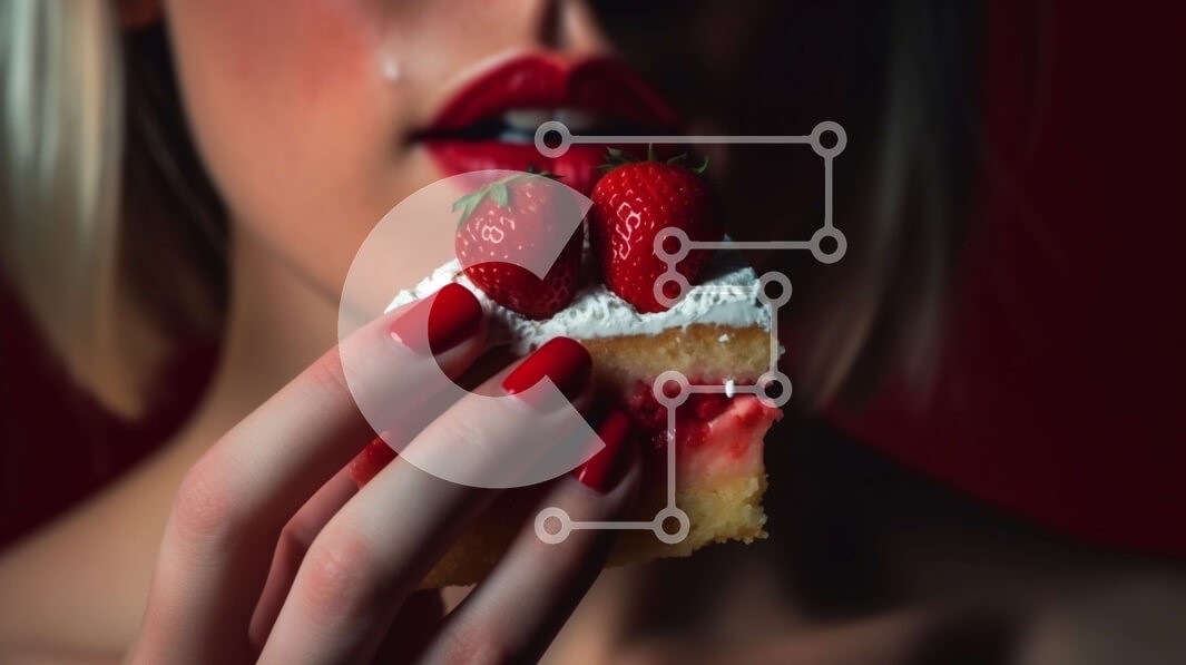 Υπάρχει δυνατότητα προσωποποίησης με δική σας φωτογραφία και προσαρμογής διαστάσεων κατόπιν παραγγελίας. Το συγεκεριμενο puzzle παρουσιαζει Αυτή η εικόνα παρουσιάζει μια γυναίκα που κρατά ένα κομμάτι κέικ με φράουλες. Κοιτάζει κατευθείαν την κάμερα με μια σαγηνευτική έκφραση. Το κόκκινο βερνίκι νυχιών και το κόκκινο κραγιόν της προσθέτουν στη συνολική σαγηνευτική ατμόσφαιρα της εικόνας. Ένα μοναδικό puzzle που συ