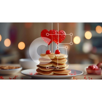 Υπάρχει δυνατότητα προσωποποίησης με δική σας φωτογραφία και προσαρμογής διαστάσεων κατόπιν παραγγελίας. Το συγεκεριμενο puzzle παρουσιαζει Αυτή η εικόνα παρουσιάζει μια στοίβα από τηγανίτες σε σχήμα καρδιάς, όμορφα τοποθετημένες σε ένα πιάτο. Οι τηγανίτες καλύπτονται με γαρνιτούρες σε σχήμα καρδιάς, προσθέτοντας μια νότα αγάπης στο πιάτο. Γύρω από το πιάτο, υπάρχουν πολλά μικρά φλιτζάνια και μπολ, υποδηλώνοντας τ
