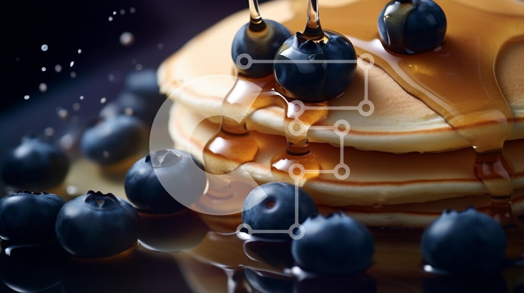 Υπάρχει δυνατότητα προσωποποίησης με δική σας φωτογραφία και προσαρμογής διαστάσεων κατόπιν παραγγελίας. Το συγεκεριμενο puzzle παρουσιαζει Αυτή η εικόνα παρουσιάζει μια απολαυστική στοίβα από τηγανίτες περιχυμένες με σιρόπι και με φρέσκα βατόμουρα. Οι τηγανίτες είναι χρυσοκάστανες, αφράτες και στρώνονται με μια γυαλιστερή γυαλάδα από το σιρόπι. Τα βατόμουρα, διαφόρων μεγεθών, είναι διάσπαρτα γύρω από τις τηγανίτε
