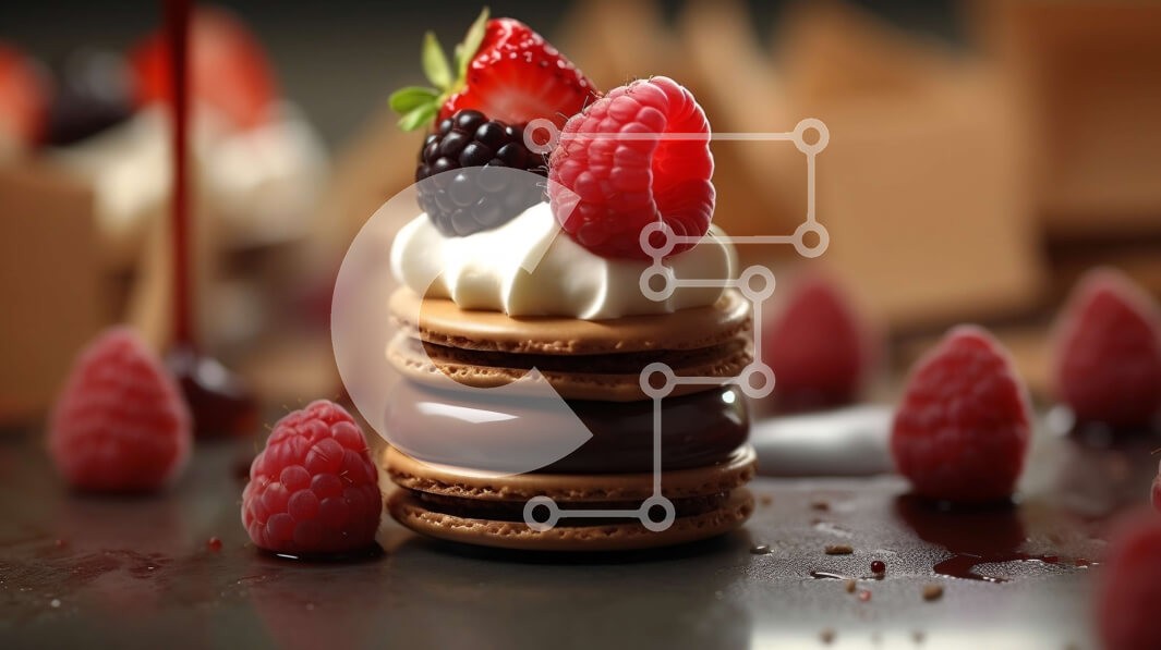 Υπάρχει δυνατότητα προσωποποίησης με δική σας φωτογραφία και προσαρμογής διαστάσεων κατόπιν παραγγελίας. Το συγεκεριμενο puzzle παρουσιαζει Αυτή η εικόνα παρουσιάζει μια στοίβα μακαρόν σοκολάτας και βατόμουρου με σαντιγί και σοκολάτα. Το σκούρο φόντο προσθέτει βάθος και δράμα στην εικόνα, κάνοντας τις λιχουδιές να φαίνονται ακόμη πιο απολαυστικές και δελεαστικές. Ένα μοναδικό puzzle που συνδυάζει ποιότητα, αισθητ