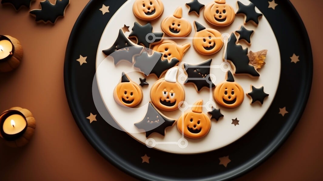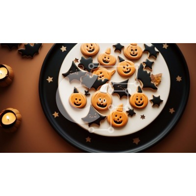 Υπάρχει δυνατότητα προσωποποίησης με δική σας φωτογραφία και προσαρμογής διαστάσεων κατόπιν παραγγελίας. Το συγεκεριμενο puzzle παρουσιαζει Αυτή η εικόνα παρουσιάζει ένα πιάτο με μπισκότα αποκριών στολισμένο με κολοκύθες, νυχτερίδες, κεριά και διάφορα διακοσμητικά. Τα μπισκότα τοποθετούνται σε ένα τραπέζι με φόντο πορτοκαλί, δημιουργώντας μια ζωντανή και εορταστική σκηνή. Είτε για το Halloween είτε για άλλη γιορτή