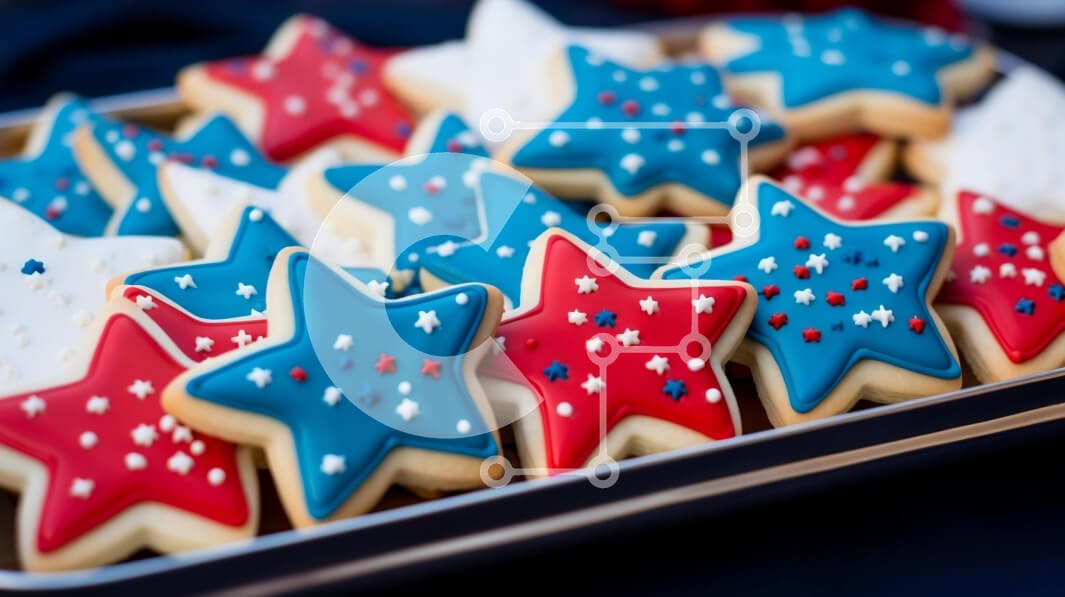 Υπάρχει δυνατότητα προσωποποίησης με δική σας φωτογραφία και προσαρμογής διαστάσεων κατόπιν παραγγελίας. Το συγεκεριμενο puzzle παρουσιαζει Η εικόνα παρουσιάζει έναν δίσκο με μπισκότα διακοσμημένο με κόκκινα, λευκά και μπλε αστέρια σε σχήμα αστεριών. Τα μπισκότα σε σχήμα αστεριού τοποθετούνται το ένα πάνω στο άλλο, δημιουργώντας μια διάταξη που φαίνεται να είναι γιορτινή και εορταστική. Υπάρχουν αρκετοί διαφορετικ