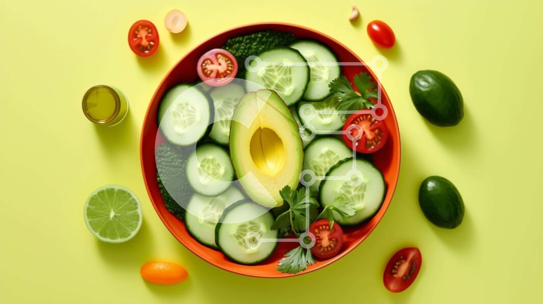 Υπάρχει δυνατότητα προσωποποίησης με δική σας φωτογραφία και προσαρμογής διαστάσεων κατόπιν παραγγελίας. Το συγεκεριμενο puzzle παρουσιαζει Αυτή η εικόνα δείχνει ένα μπολ γεμάτο με μια ποικιλία από φρέσκα λαχανικά, όπως αγγούρια, ντομάτες και αβοκάντο. Το πιάτο περιλαμβάνει επίσης πρόσθετα φρούτα και λαχανικά όπως λεμόνια και λάιμ για να βελτιώσουν τις γεύσεις του πιάτου. Η συνολική εντύπωση της εικόνας είναι η φρ
