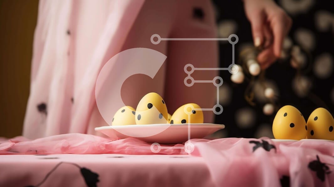 Υπάρχει δυνατότητα προσωποποίησης με δική σας φωτογραφία και προσαρμογής διαστάσεων κατόπιν παραγγελίας. Το συγεκεριμενο puzzle παρουσιαζει Αυτή η εικόνα παρουσιάζει ένα ροζ τραπέζι στολισμένο με πολλά κίτρινα αυγά. Ένα άτομο στέκεται δίπλα στο τραπέζι, κρατώντας ένα από τα αυγά στο χέρι της. Δύο μικρά μπολ είναι επίσης ορατά σε κοντινή απόσταση, προσθέτοντας στη γοητευτική εμφάνιση του φαγητού. Ένα μοναδικό puzz