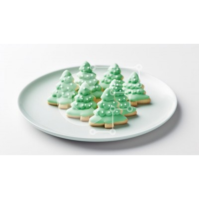 Υπάρχει δυνατότητα προσωποποίησης με δική σας φωτογραφία και προσαρμογής διαστάσεων κατόπιν παραγγελίας. Το συγεκεριμενο puzzle παρουσιαζει Η εικόνα παρουσιάζει ένα πιάτο γεμάτο με όμορφα διακοσμημένα μπισκότα σε σχήμα χριστουγεννιάτικου δέντρου. Αυτά τα μπισκότα είναι στολισμένα με ένα απαλό πράσινο γλάσο, που θυμίζει φύλλωμα πεύκου, και τονίζονται με λευκές κουκκίδες που θυμίζουν χιόνι. Η διάταξη παρουσιάζει μια