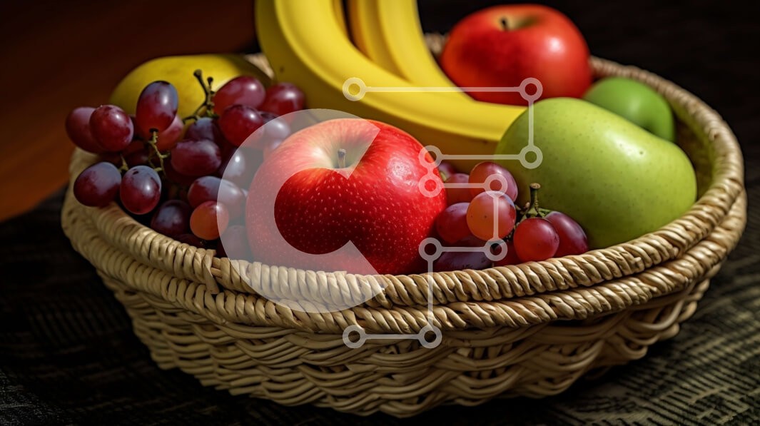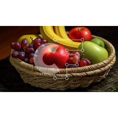 Υπάρχει δυνατότητα προσωποποίησης με δική σας φωτογραφία και προσαρμογής διαστάσεων κατόπιν παραγγελίας. Το συγεκεριμενο puzzle παρουσιαζει Αυτή η εικόνα παρουσιάζει ένα ψάθινο καλάθι γεμάτο με διάφορα φρέσκα φρούτα, όπως σταφύλια, πορτοκάλια, μπανάνες και μήλα. Τα φρούτα είναι τακτοποιημένα στο καλάθι και τα χρώματα των φρούτων δημιουργούν μια όμορφη αντίθεση στο καλάθι. Αυτή η εικόνα είναι ιδανική για οποιοδήποτ