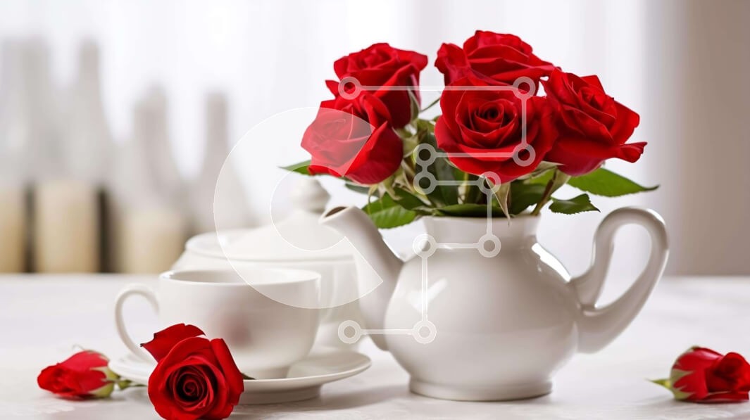 Υπάρχει δυνατότητα προσωποποίησης με δική σας φωτογραφία και προσαρμογής διαστάσεων κατόπιν παραγγελίας. Το συγεκεριμενο puzzle παρουσιαζει Η εικόνα απεικονίζει μια λευκή τσαγιέρα με κόκκινα τριαντάφυλλα, δύο φλιτζάνια, πιατάκια και μαχαιροπήρουνα τοποθετημένα σε ένα τραπέζι. Δημιουργεί μια ατμόσφαιρα ζεστασιάς και κομψότητας, ιδανική για χαλάρωση και για να περάσετε χρόνο με την οικογένεια ή τους φίλους σας. Ένα