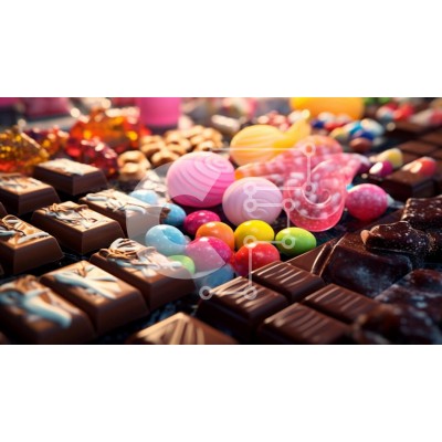 Υπάρχει δυνατότητα προσωποποίησης με δική σας φωτογραφία και προσαρμογής διαστάσεων κατόπιν παραγγελίας. Το συγεκεριμενο puzzle παρουσιαζει Η εικόνα δείχνει μια σειρά από πολύχρωμες καραμέλες και σοκολάτες σχολαστικά διατεταγμένες σε μια επιφάνεια. Διάφοροι τύποι σοκολατών, συμπεριλαμβανομένων μπάρες και τρούφες, εμφανίζονται σε περίοπτη θέση μαζί με ζωντανές κολλώδεις καραμέλες, γλειφιτζούρια και επικαλυμμένα σοκ