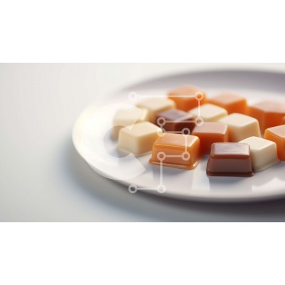 Υπάρχει δυνατότητα προσωποποίησης με δική σας φωτογραφία και προσαρμογής διαστάσεων κατόπιν παραγγελίας. Το συγεκεριμενο puzzle παρουσιαζει Αυτή η εικόνα δείχνει ένα λευκό πιάτο γεμάτο με πολύχρωμα τετράγωνα καραμέλας. Τα τετράγωνα καραμελών έρχονται σε διάφορες γεύσεις και χρώματα, όπως κόκκινο, πορτοκαλί, κίτρινο και καφέ. Μερικοί από τους κύβους είναι ελαφρώς μεγαλύτεροι από άλλους, υποδεικνύοντας ότι μπορεί να