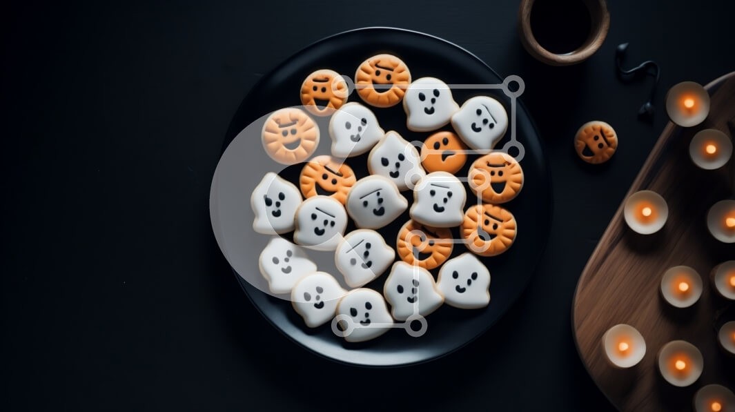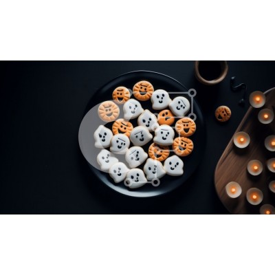 Υπάρχει δυνατότητα προσωποποίησης με δική σας φωτογραφία και προσαρμογής διαστάσεων κατόπιν παραγγελίας. Το συγεκεριμενο puzzle παρουσιαζει Αυτή η εικόνα παρουσιάζει ένα μαύρο πιάτο γεμάτο με μπισκότα διακοσμημένα σε σχήμα φαντασμάτων. Γύρω από το πιάτο τοποθετούνται κεριά, δημιουργώντας μια γιορτινή ατμόσφαιρα. Η εικόνα παρουσιάζει μια ιδέα διακόσμησης εμπνευσμένη από το Halloween για να γιορτάσετε αυτές τις διακ