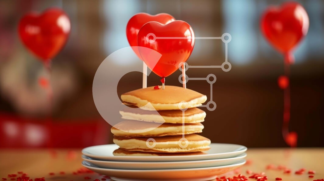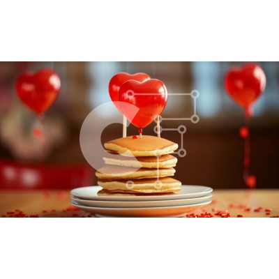Υπάρχει δυνατότητα προσωποποίησης με δική σας φωτογραφία και προσαρμογής διαστάσεων κατόπιν παραγγελίας. Το συγεκεριμενο puzzle παρουσιαζει Αυτή η εικόνα παρουσιάζει μια στοίβα από τηγανίτες σε σχήμα καρδιάς με κόκκινα μπαλόνια, δημιουργώντας μια ρομαντική και εορταστική σκηνή. Πολλά πιάτα και μπολ είναι ορατά στο βάθος, υποδηλώνοντας ότι οι τηγανίτες μπορούν να σερβιριστούν ως νόστιμο επιδόρπιο για την Ημέρα του