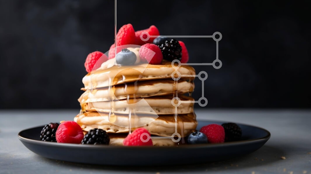 Υπάρχει δυνατότητα προσωποποίησης με δική σας φωτογραφία και προσαρμογής διαστάσεων κατόπιν παραγγελίας. Το συγεκεριμενο puzzle παρουσιαζει Αυτή η εικόνα παρουσιάζει μια στοίβα από τηγανίτες στολισμένες με μια γενναιόδωρη μερίδα ανάμεικτων μούρων και σιροπιού. Τα μούρα περιλαμβάνουν φράουλες, σμέουρα και βατόμουρα, παρέχοντας μια έκρηξη χρώματος και γεύσης. Είτε πρόκειται για ένα ιδιαίτερο πρωινό είτε για ένα απολ