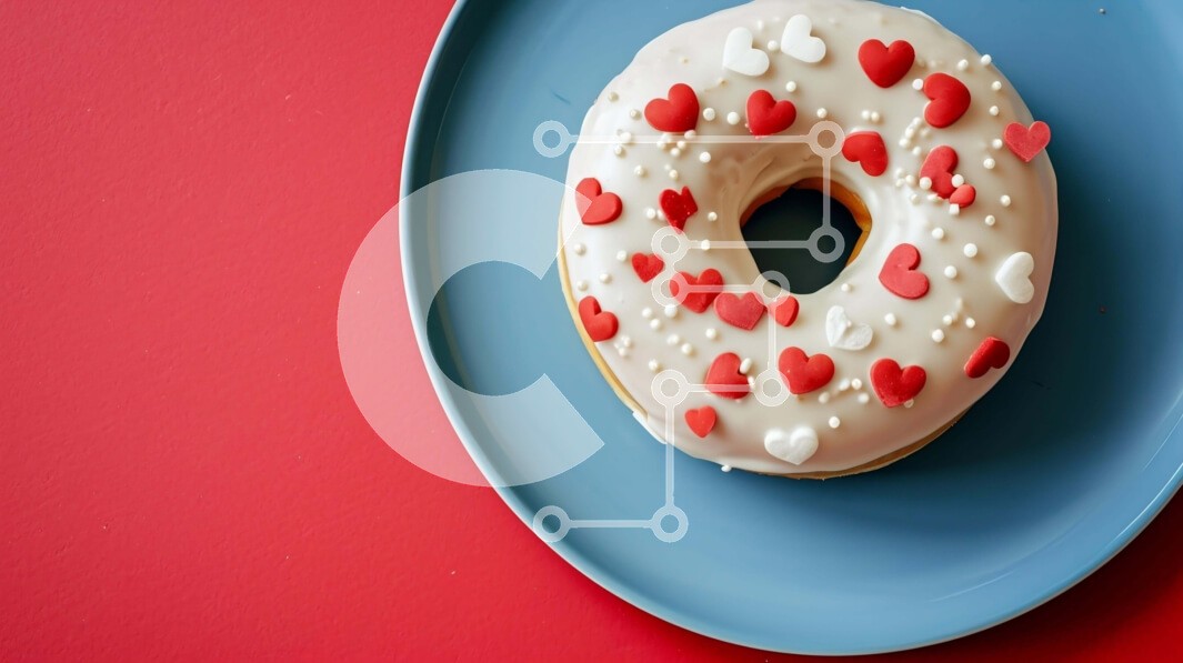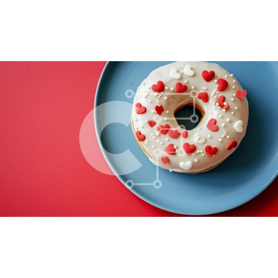 Υπάρχει δυνατότητα προσωποποίησης με δική σας φωτογραφία και προσαρμογής διαστάσεων κατόπιν παραγγελίας. Το συγεκεριμενο puzzle παρουσιαζει Αυτή η εικόνα παρουσιάζει ένα ντόνατ για την Ημέρα του Αγίου Βαλεντίνου διακοσμημένο με κόκκινες και λευκές καρδιές. Τοποθετείται σε μπλε πιάτο, προσθέτοντας στη γιορτινή ατμόσφαιρα. Αρκετές μικρές καρδιές είναι διάσπαρτες γύρω από το ντόνατ, ενισχύοντας περαιτέρω τον εορταστι