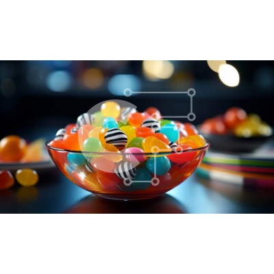 Υπάρχει δυνατότητα προσωποποίησης με δική σας φωτογραφία και προσαρμογής διαστάσεων κατόπιν παραγγελίας. Το συγεκεριμενο puzzle παρουσιαζει Αυτή η εικόνα δείχνει ένα μπολ γεμάτο με διάφορες πολύχρωμες καραμέλες. Τα κουφέτα είναι διαφορετικών σχημάτων και μεγεθών, άλλα ριγέ και άλλα στρογγυλά. Είναι διατεταγμένα με τυχαίο τρόπο, χύνοντας έξω από το μπολ στο σκούρο ξύλινο τραπέζι. Αρκετά άλλα μπολ και πιάτα στο τραπ