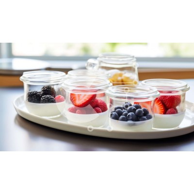 Υπάρχει δυνατότητα προσωποποίησης με δική σας φωτογραφία και προσαρμογής διαστάσεων κατόπιν παραγγελίας. Το συγεκεριμενο puzzle παρουσιαζει Αυτή η εικόνα παρουσιάζει έναν όμορφο δίσκο γεμάτο με μια ποικιλία από φρέσκα φρούτα, όπως βατόμουρα, φράουλες και σμέουρα. Υπάρχει επίσης ένα μπολ με κρεμώδες γιαούρτι τοποθετημένο στο κέντρο, το οποίο μπορεί να χρησιμοποιηθεί για να βουτήξετε τα φρούτα. Το τραπέζι διαθέτει ε