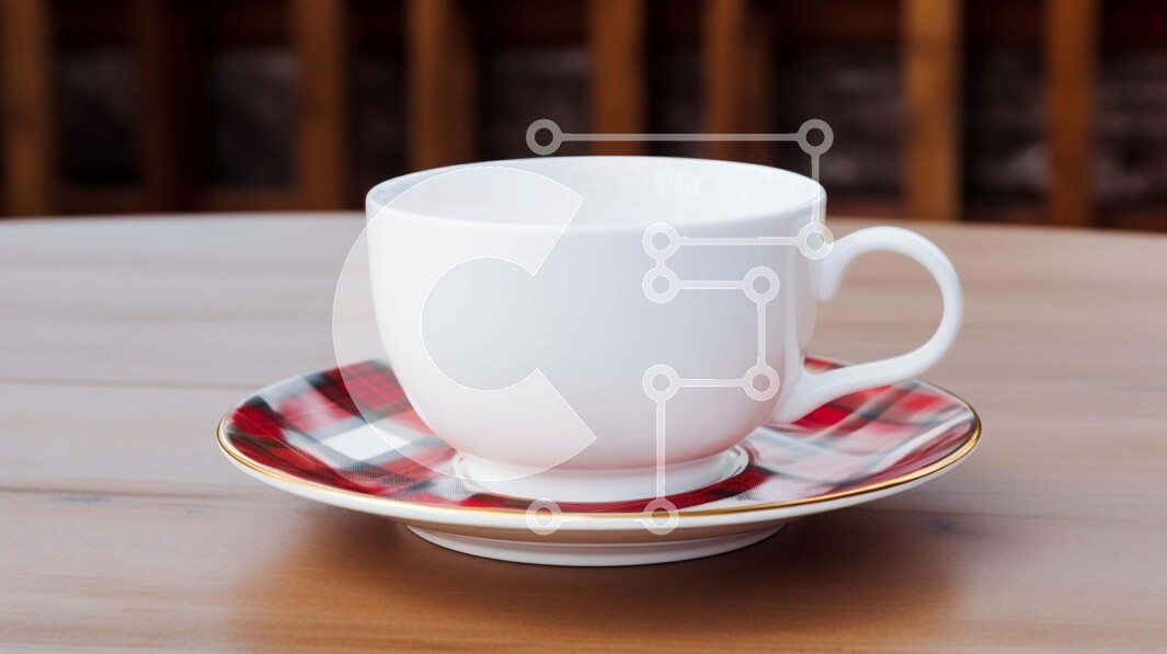 Υπάρχει δυνατότητα προσωποποίησης με δική σας φωτογραφία και προσαρμογής διαστάσεων κατόπιν παραγγελίας. Το συγεκεριμενο puzzle παρουσιαζει Αυτή η εικόνα παρουσιάζει ένα λευκό φλιτζάνι καφέ και ένα πιατάκι πάνω από ένα ξύλινο τραπέζι. Το φόντο έχει ένα κόκκινο και λευκό καρό μοτίβο, παρέχοντας μια διακοσμητική πινελιά. Το ρόφημα που σερβίρεται δεν προσδιορίζεται, αλλά μπορεί να είναι τσάι ή καφές. Ένα μοναδικό pu