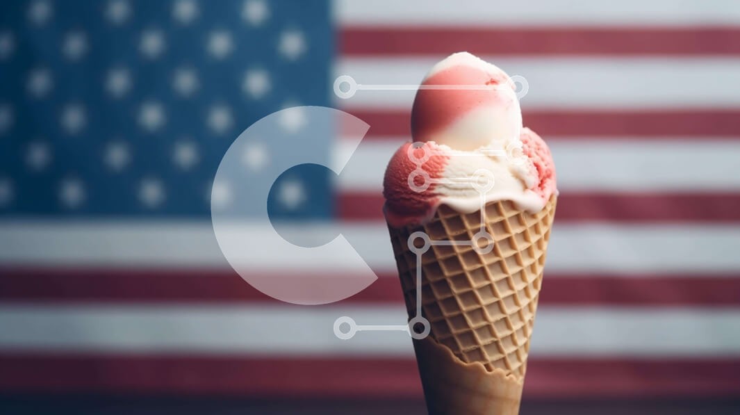 Υπάρχει δυνατότητα προσωποποίησης με δική σας φωτογραφία και προσαρμογής διαστάσεων κατόπιν παραγγελίας. Το συγεκεριμενο puzzle παρουσιαζει Αυτή η εικόνα παρουσιάζει ένα νόστιμο παγωτό σε χωνάκι βάφλας με κόκκινες, λευκές και μπλε επικαλύψεις. Είναι τοποθετημένο μπροστά από μια αμερικανική σημαία, δημιουργώντας ένα πατριωτικό θέμα. Αρκετά αστέρια στο φόντο ενισχύουν την αναπαράσταση των Ηνωμένων Πολιτειών της Αμερ