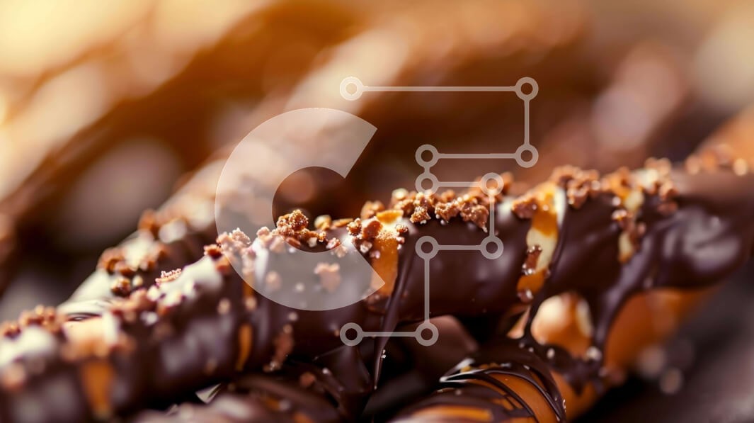 Υπάρχει δυνατότητα προσωποποίησης με δική σας φωτογραφία και προσαρμογής διαστάσεων κατόπιν παραγγελίας. Το συγεκεριμενο puzzle παρουσιαζει Αυτή η εικόνα παρουσιάζει ένα κοντινό πλάνο από κουλούρια καλυμμένα με σοκολάτα με πολύχρωμα πασπαλίσματα. Τα σοκολατένια κουλούρια είναι τοποθετημένα σε μια επιφάνεια, αναδεικνύοντας την ορεκτική τους εμφάνιση. Η εστίαση είναι στις υφές και τις γεύσεις της σοκολάτας και των κ