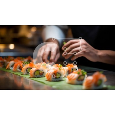 Υπάρχει δυνατότητα προσωποποίησης με δική σας φωτογραφία και προσαρμογής διαστάσεων κατόπιν παραγγελίας. Το συγεκεριμενο puzzle παρουσιαζει Αυτή η εικόνα δείχνει ένα άτομο που ετοιμάζει ρολά σούσι σε μια ιαπωνική εγκατάσταση. Το τραπέζι είναι γεμάτο με φρεσκοφτιαγμένα ρολά σούσι, συμπεριλαμβανομένων ποικιλιών με γέμιση τόνου, σολομού και αβοκάντο. Τα ζωηρά χρώματα του σούσι και η επιδέξια παρουσίαση αναδεικνύουν τ