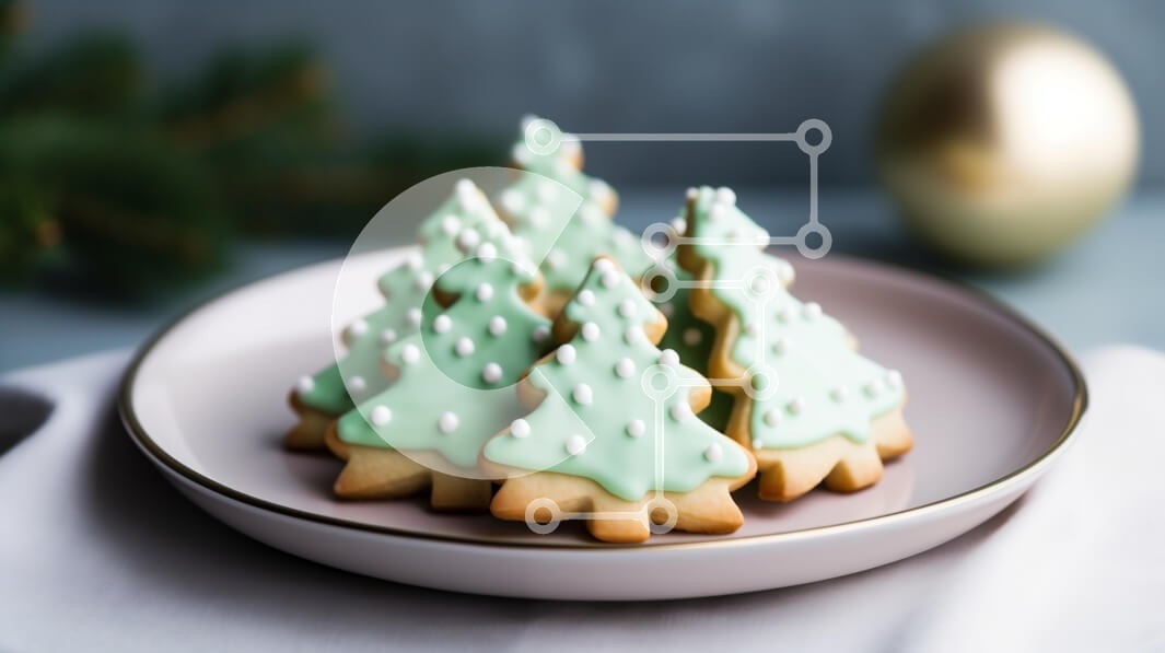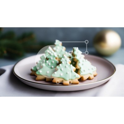 Υπάρχει δυνατότητα προσωποποίησης με δική σας φωτογραφία και προσαρμογής διαστάσεων κατόπιν παραγγελίας. Το συγεκεριμενο puzzle παρουσιαζει Αυτή η εικόνα παρουσιάζει ένα πιάτο με όμορφα διακοσμημένα μπισκότα σε σχήμα χριστουγεννιάτικου δέντρου, στολισμένα με πράσινο γλάσο μέντας και λευκές διακοσμητικές κουκκίδες. Τα μπισκότα είναι τακτοποιημένα σε ένα απαλό, παστέλ χρώματος πιάτο, δημιουργώντας μια γιορτινή ατμόσ