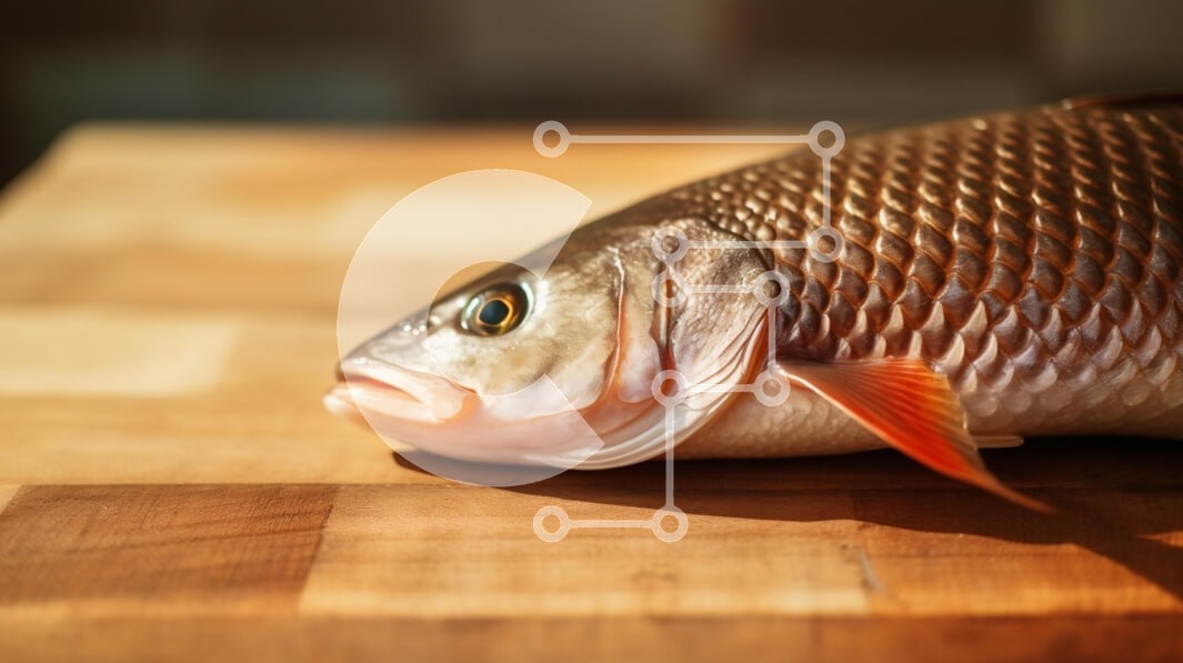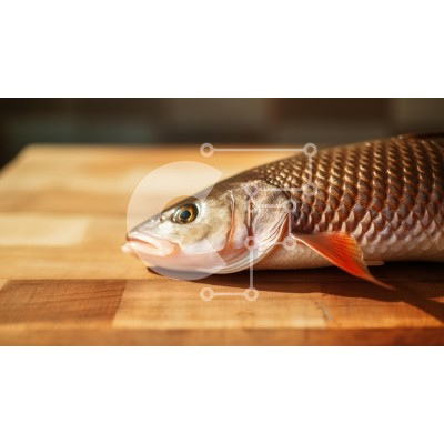 Υπάρχει δυνατότητα προσωποποίησης με δική σας φωτογραφία και προσαρμογής διαστάσεων κατόπιν παραγγελίας. Το συγεκεριμενο puzzle παρουσιαζει Αυτή η εικόνα παρουσιάζει ένα φρέσκο ψάρι ξαπλωμένο σε μια ξύλινη σανίδα κοπής. Το ψάρι έχει ένα λαμπερό, ιριδίζον δέρμα με ορατά λεπτομερή λέπια και το μάτι του φαίνεται ευδιάκριτα, προσθέτοντας μια ρεαλιστική πινελιά. Ο φωτισμός αναδεικνύει την υφή του ψαριού και τους φυσι