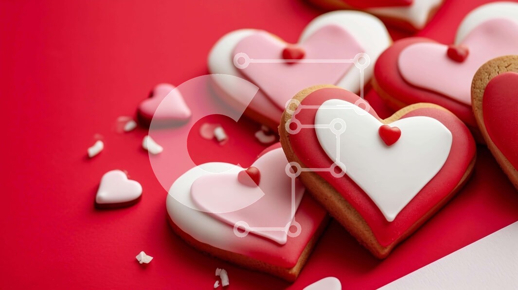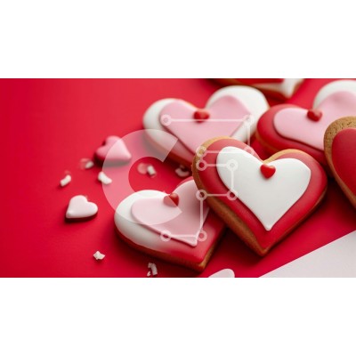 Υπάρχει δυνατότητα προσωποποίησης με δική σας φωτογραφία και προσαρμογής διαστάσεων κατόπιν παραγγελίας. Το συγεκεριμενο puzzle παρουσιαζει Αυτή η εικόνα παρουσιάζει πολλά μπισκότα σε σχήμα καρδιάς σε κόκκινο φόντο. Τα μπισκότα είναι διακοσμημένα με ροζ και λευκό γλάσο, δημιουργώντας μια απολαυστική και εορταστική εμφάνιση. Τοποθετούνται στρατηγικά γύρω από το τραπέζι, δίπλα στις κάρτες για την Ημέρα του Αγίου Βαλ