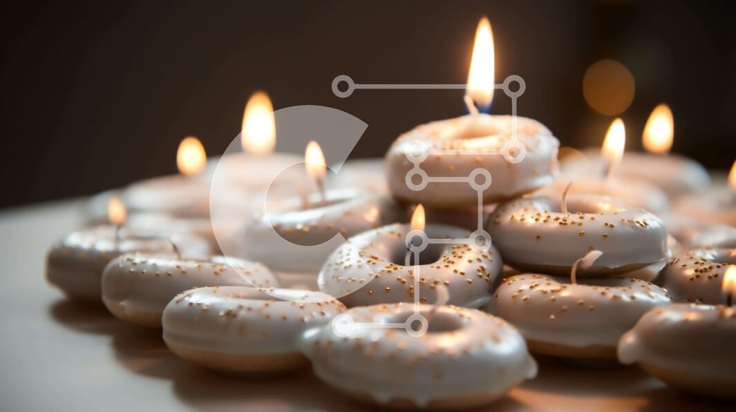 Υπάρχει δυνατότητα προσωποποίησης με δική σας φωτογραφία και προσαρμογής διαστάσεων κατόπιν παραγγελίας. Το συγεκεριμενο puzzle παρουσιαζει Αυτή η εικόνα παρουσιάζει μια ομάδα ντόνατς που φωτίζονται από αναμμένα κεριά. Οι λουκουμάδες είναι τοποθετημένοι σε ένα τραπέζι, με κηροπήγια τοποθετημένα στη μέση. Μερικά από τα κεριά καίνε, δημιουργώντας μια γιορτινή ατμόσφαιρα. Πολλά κεριά τοποθετούνται πάνω από κάθε ντόνα