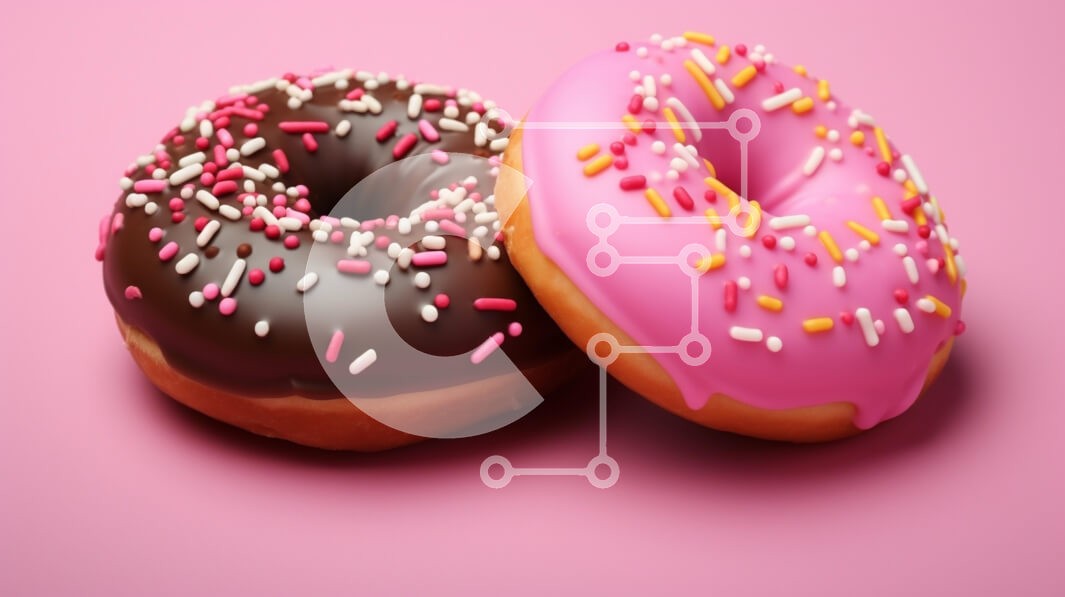 Υπάρχει δυνατότητα προσωποποίησης με δική σας φωτογραφία και προσαρμογής διαστάσεων κατόπιν παραγγελίας. Το συγεκεριμενο puzzle παρουσιαζει Αυτή η εικόνα παρουσιάζει δύο νόστιμα ντόνατς που στηρίζονται σε μια ροζ επιφάνεια. Το πρώτο ντόνατ καλύπτεται με ένα πλούσιο γλάσο σοκολάτας και στολίζεται με πολύχρωμα ψεκάσματα, ενώ το δεύτερο ντόνατ διαθέτει ένα ζωηρό ροζ γλάσο με κίτρινα και ροζ πασπαλίσματα διάσπαρτα από