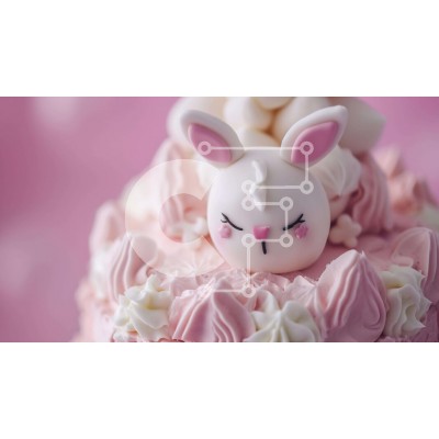 Υπάρχει δυνατότητα προσωποποίησης με δική σας φωτογραφία και προσαρμογής διαστάσεων κατόπιν παραγγελίας. Το συγεκεριμενο puzzle παρουσιαζει Η εικόνα δείχνει ένα άσπρο κέικ λαγουδάκι στολισμένο με ροζ γλάσο και φοντάν. Κάθεται πάνω από μια περίτεχνη ροζ τούρτα, που πιθανώς προορίζεται για γενέθλια ή ειδική εκδήλωση. Επιπλέον, μικρά διακοσμητικά κουνελάκια τοποθετούνται γύρω από την τούρτα, υπονοώντας ένα εορταστικό