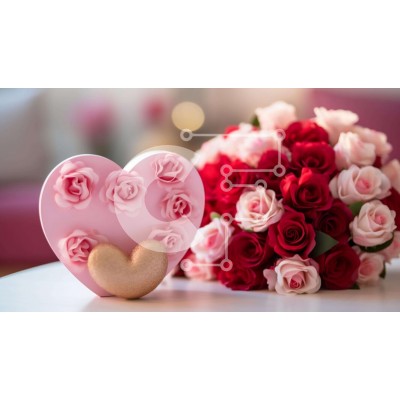 Υπάρχει δυνατότητα προσωποποίησης με δική σας φωτογραφία και προσαρμογής διαστάσεων κατόπιν παραγγελίας. Το συγεκεριμενο puzzle παρουσιαζει Αυτή η εικόνα παρουσιάζει ένα ροζ κέικ σε σχήμα καρδιάς διακοσμημένο με κόκκινα και ροζ τριαντάφυλλα, μαζί με δύο μπισκότα σε σχήμα καρδιάς. Αυτά τα αντικείμενα είναι ιδανικά για να γιορτάσετε την Ημέρα του Αγίου Βαλεντίνου, που πέφτει στις 14 Φεβρουαρίου κάθε έτους. Μπορεί να