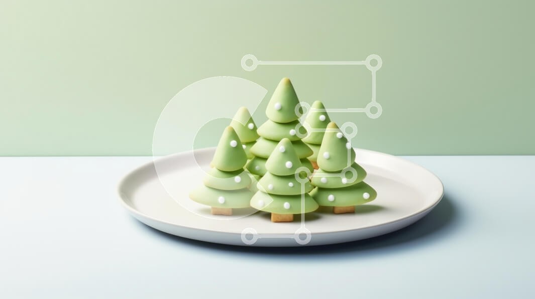 Υπάρχει δυνατότητα προσωποποίησης με δική σας φωτογραφία και προσαρμογής διαστάσεων κατόπιν παραγγελίας. Το συγεκεριμενο puzzle παρουσιαζει Η εικόνα παρουσιάζει ένα πιάτο γεμάτο με πράσινα μπισκότα σε σχήμα χριστουγεννιάτικου δέντρου, διακοσμημένα με λευκές κουκκίδες που μοιάζουν με στολίδια. Τα μπισκότα τακτοποιούνται σε μια συστάδα, δημιουργώντας μια εορταστική εμφάνιση. Το φόντο αποτελείται από μια απαλή πράσιν