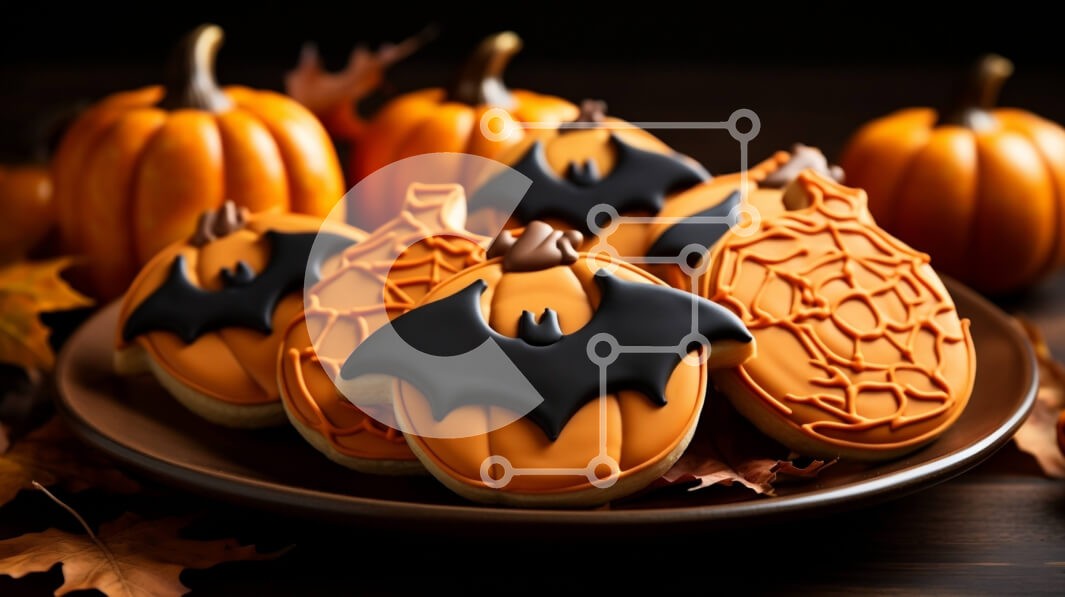Υπάρχει δυνατότητα προσωποποίησης με δική σας φωτογραφία και προσαρμογής διαστάσεων κατόπιν παραγγελίας. Το συγεκεριμενο puzzle παρουσιαζει Αυτή η εικόνα παρουσιάζει πολλά όμορφα διακοσμημένα μπισκότα κολοκύθας τοποθετημένα σε ένα σκούρο ξύλινο τραπέζι. Τα μπισκότα στολίζονται με μαύρο γλάσο σε σχήμα νυχτερίδας, προσθέτοντας μια απόκοσμη πινελιά. Τα φύλλα του φθινοπώρου είναι διάσπαρτα γύρω από τα μπισκότα, ενισχύ