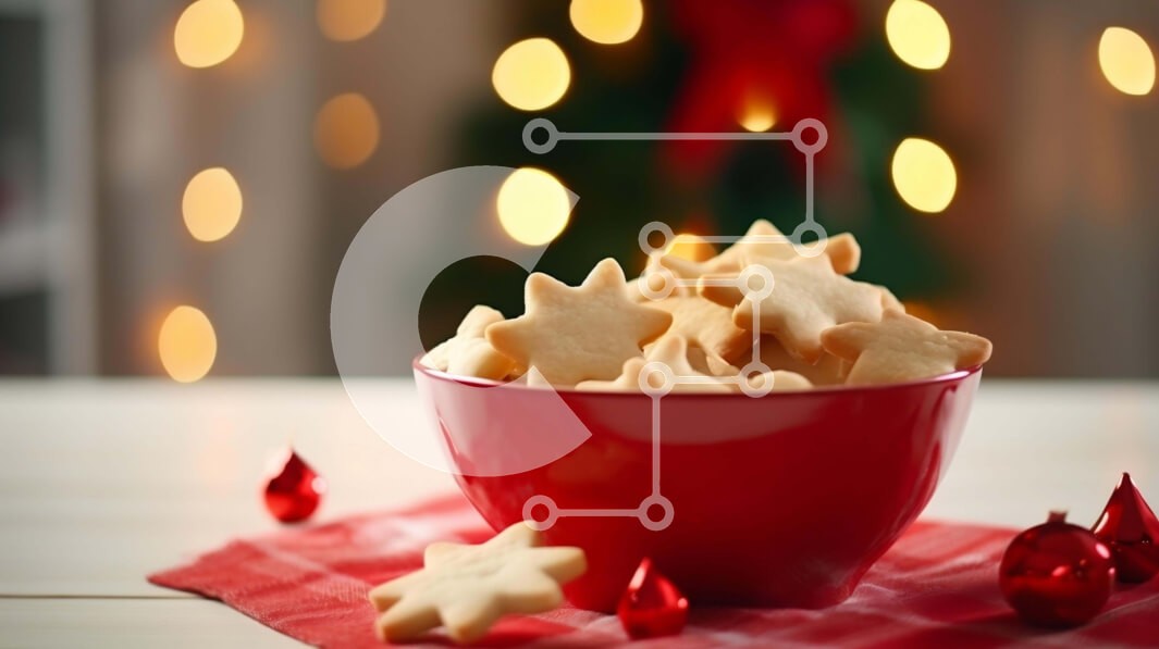 Υπάρχει δυνατότητα προσωποποίησης με δική σας φωτογραφία και προσαρμογής διαστάσεων κατόπιν παραγγελίας. Το συγεκεριμενο puzzle παρουσιαζει Αυτή η εικόνα παρουσιάζει ένα κόκκινο μπολ γεμάτο με μπισκότα σε σχήμα αστεριού, ιδανικό για την περίοδο των γιορτών. Τα μπισκότα μπορούν να σερβιριστούν ή να αποθηκευτούν για μελλοντική απόλαυση. Το τραπέζι είναι διακοσμημένο με χριστουγεννιάτικα λαμπάκια και στολίδια, δημιου