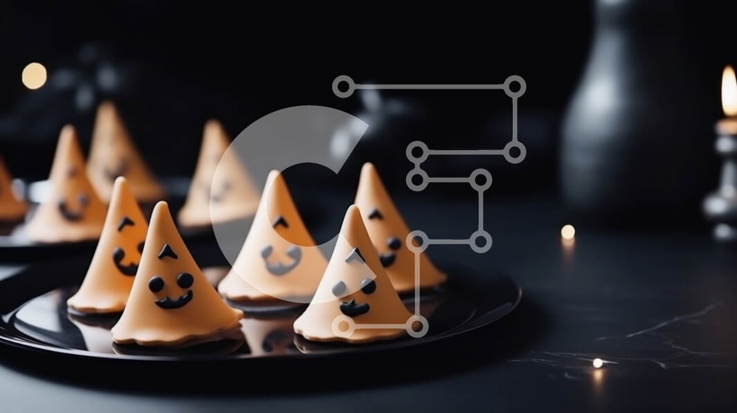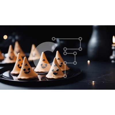 Υπάρχει δυνατότητα προσωποποίησης με δική σας φωτογραφία και προσαρμογής διαστάσεων κατόπιν παραγγελίας. Το συγεκεριμενο puzzle παρουσιαζει Αυτή η εικόνα δείχνει ένα μαύρο πιάτο γεμάτο με νόστιμα μπισκότα με καπέλο μαγισσών. Τα μπισκότα έχουν σχήμα καπέλα μαγισσών και τοποθετούνται σε κηροπήγια, δημιουργώντας μια εορταστική και απόκοσμη ατμόσφαιρα. Αυτά τα μπισκότα είναι ιδανικά για αποκριάτικα πάρτι ή για να τα μ