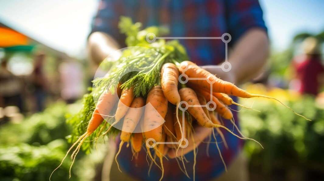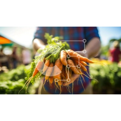 Υπάρχει δυνατότητα προσωποποίησης με δική σας φωτογραφία και προσαρμογής διαστάσεων κατόπιν παραγγελίας. Το συγεκεριμενο puzzle παρουσιαζει Αυτή η εικόνα δείχνει ένα άτομο που κρατά πολλά ματσάκια καρότα σε μια αγορά αγροτών ή μια υπαίθρια αγορά. Εκτός από τα καρότα, υπάρχουν και άλλα λαχανικά όπως τα αγγούρια, οι ντομάτες και τα παντζάρια που υπάρχουν στην εικόνα. Η σκηνή απεικονίζει ένα άτομο που ενδιαφέρεται να