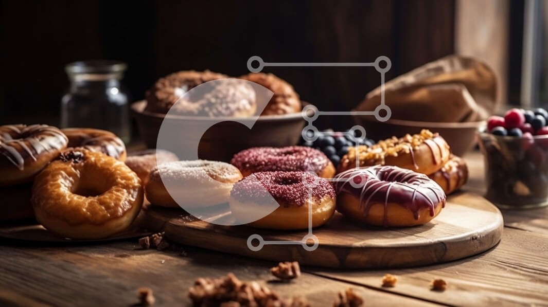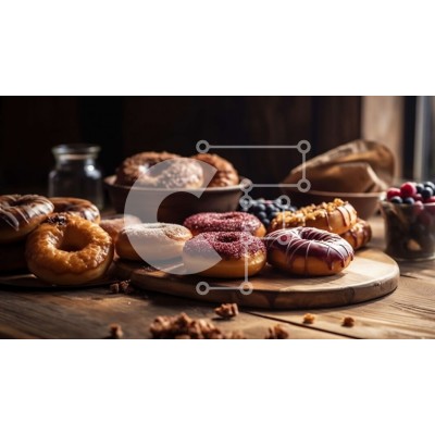 Υπάρχει δυνατότητα προσωποποίησης με δική σας φωτογραφία και προσαρμογής διαστάσεων κατόπιν παραγγελίας. Το συγεκεριμενο puzzle παρουσιαζει Αυτή η εικόνα παρουσιάζει μια διάταξη από διάφορους τύπους ντόνατς σε ένα ξύλινο τραπέζι. Τα ντόνατς έρχονται σε διάφορες ποικιλίες όπως γλασαρισμένα, πασπαλισμένα και γεμιστά. Επιπλέον, υπάρχουν διαφορετικοί τύποι επικαλύψεων όπως σοκολάτα, ψεκασμοί και φρούτα. Στο βάθος, υπά