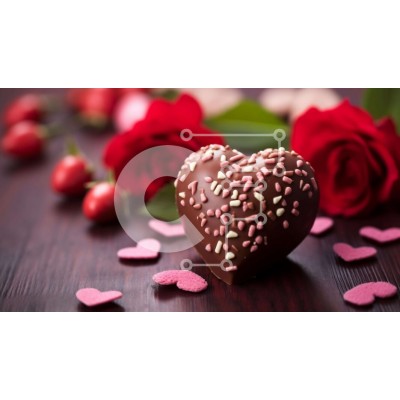 Υπάρχει δυνατότητα προσωποποίησης με δική σας φωτογραφία και προσαρμογής διαστάσεων κατόπιν παραγγελίας. Το συγεκεριμενο puzzle παρουσιαζει Αυτή η εικόνα παρουσιάζει μια σοκολάτα σε σχήμα καρδιάς καλυμμένη με ψεκασμούς, τοποθετημένη σε ένα τραπέζι που περιβάλλεται από κόκκινα τριαντάφυλλα, φράουλες και άλλα διακοσμητικά στοιχεία. Η σοκολάτα πιθανότατα φτιάχνεται ειδικά για την Ημέρα του Αγίου Βαλεντίνου, η οποία γ