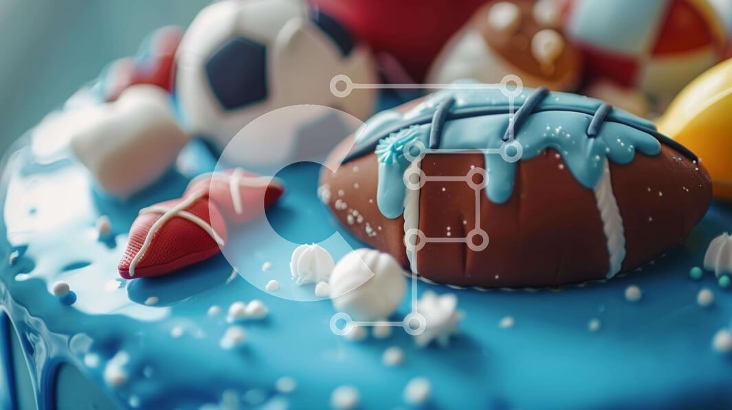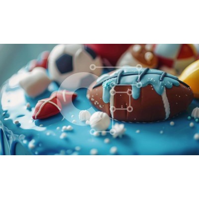 Υπάρχει δυνατότητα προσωποποίησης με δική σας φωτογραφία και προσαρμογής διαστάσεων κατόπιν παραγγελίας. Το συγεκεριμενο puzzle παρουσιαζει Η εικόνα παρουσιάζει μια μπλε τούρτα διακοσμημένη με διάφορα είδη που σχετίζονται με τον αθλητισμό, όπως ποδόσφαιρο, μπάλες ποδοσφαίρου και μπάλες μπάσκετ. Μερικά από τα αντικείμενα φαίνεται να είναι τοποθετημένα το ένα πάνω στο άλλο, ενώ άλλα είναι διάσπαρτα σε όλο το κέικ. Υ