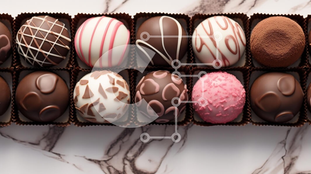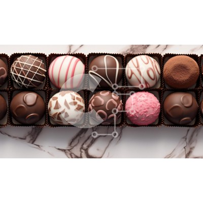 Υπάρχει δυνατότητα προσωποποίησης με δική σας φωτογραφία και προσαρμογής διαστάσεων κατόπιν παραγγελίας. Το συγεκεριμενο puzzle παρουσιαζει Αυτή η εικόνα παρουσιάζει μια ποικιλία από όμορφα φτιαγμένες τρούφες σοκολάτας τοποθετημένες σε ένα προσεγμένο ορθογώνιο κουτί. Οι τρούφες έρχονται σε διάφορα σχέδια και χρώματα, όπως μαύρη σοκολάτα, λευκή σοκολάτα και τρούφα με ροζ επίστρωση. Οι σοκολατένιες μπάλες είναι διακ
