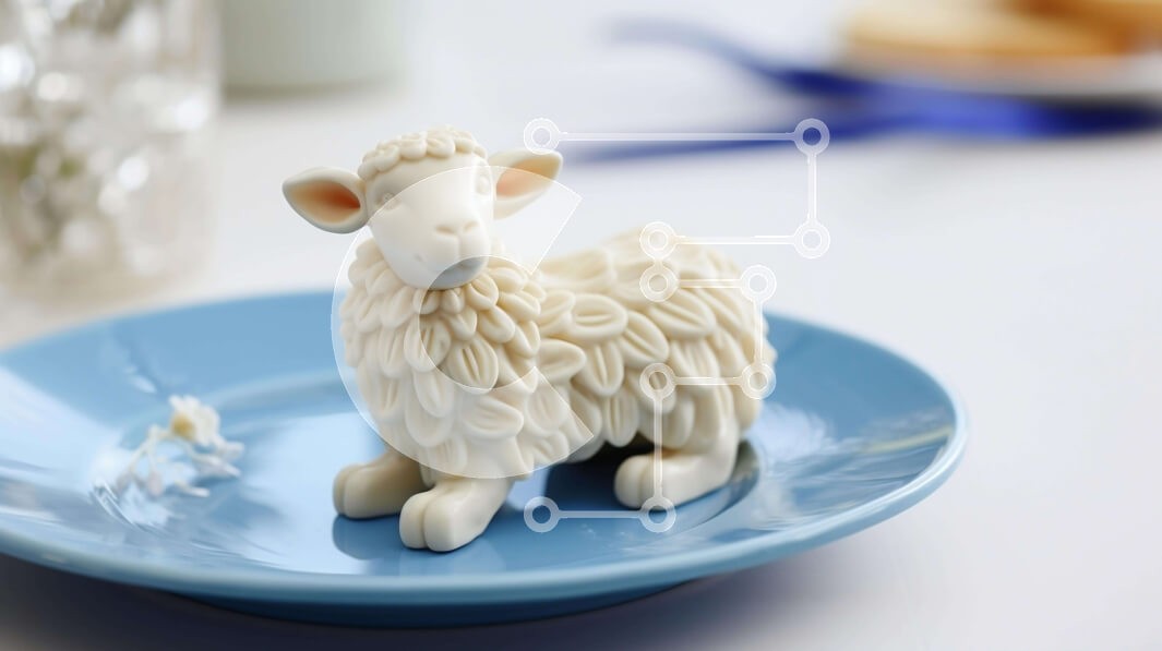 Υπάρχει δυνατότητα προσωποποίησης με δική σας φωτογραφία και προσαρμογής διαστάσεων κατόπιν παραγγελίας. Το συγεκεριμενο puzzle παρουσιαζει Η εικόνα δείχνει ένα μπλε πιάτο με ένα διακοσμητικό ειδώλιο προβάτου τοποθετημένο στην κορυφή, που περιβάλλεται από πολλά μικρά πιάτα στο τραπέζι. Αυτά τα πιάτα είναι τέλεια για να σερβίρετε διάφορα επιδόρπια όπως μπισκότα, κέικ και αρτοσκευάσματα. Ένα μοναδικό puzzle που συν