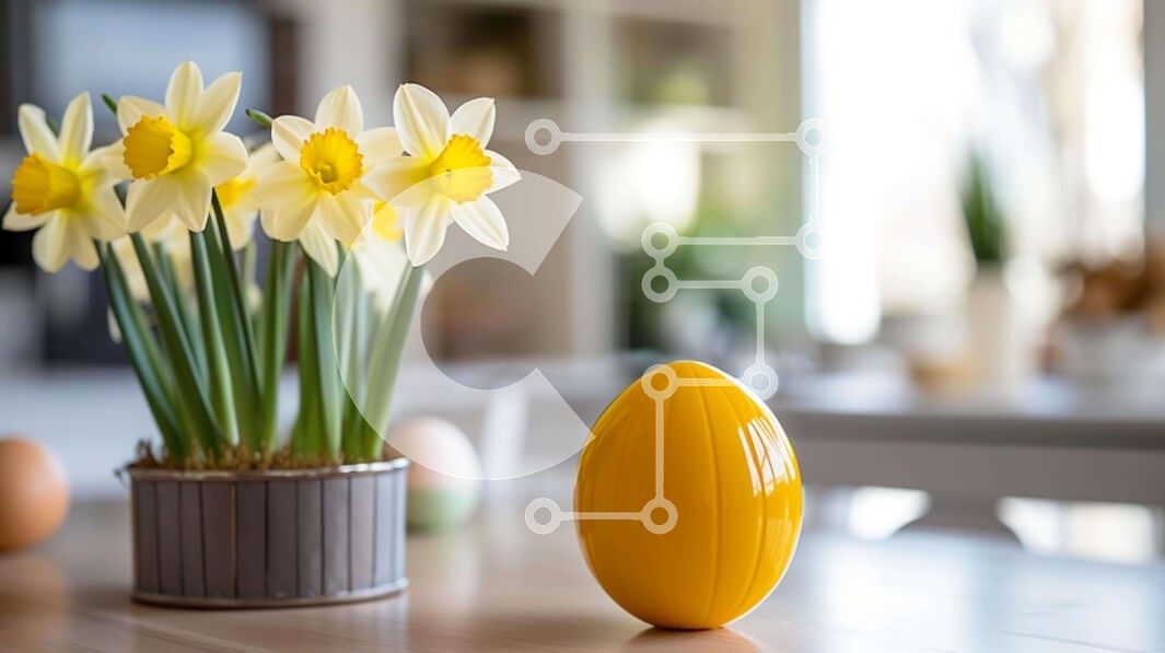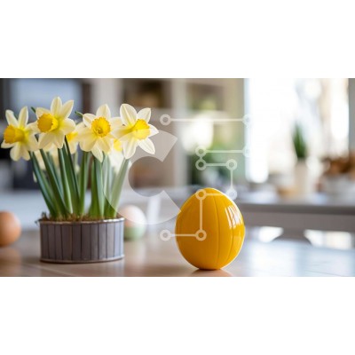Υπάρχει δυνατότητα προσωποποίησης με δική σας φωτογραφία και προσαρμογής διαστάσεων κατόπιν παραγγελίας. Το συγεκεριμενο puzzle παρουσιαζει Αυτή η εικόνα παρουσιάζει ένα τραπέζι φαγητού με νάρκισσους και ένα κίτρινο αυγό ως κεντρικό στοιχείο. Άλλα μικρά αντικείμενα όπως πιάτα, κύπελλα και χαρτοπετσέτες είναι επίσης διάσπαρτα σε όλο το δωμάτιο. Ένα μοναδικό puzzle που συνδυάζει ποιότητα, αισθητική και εμπειρία. Υ