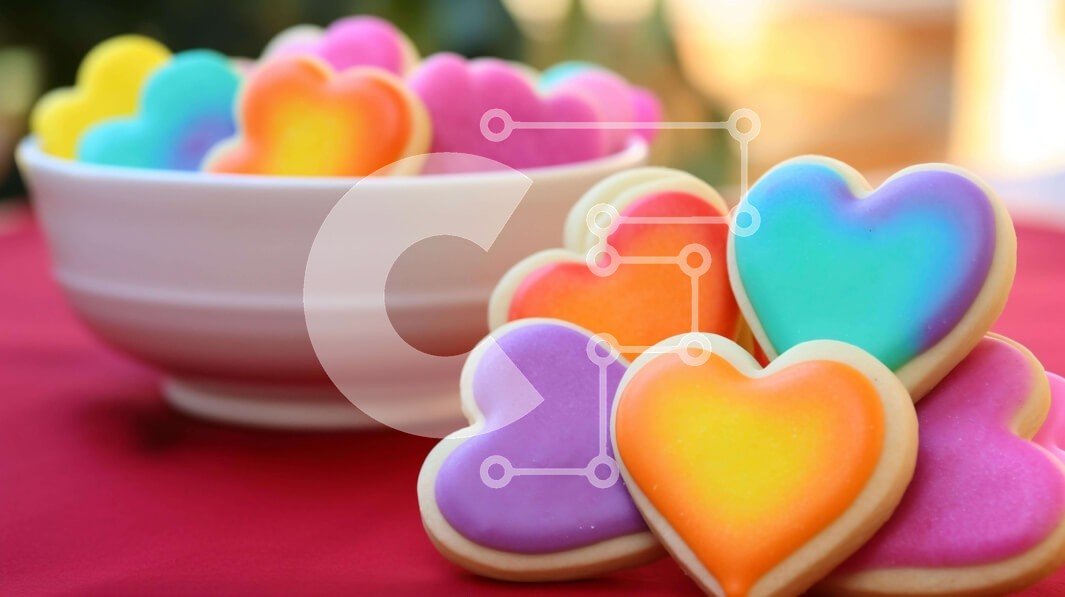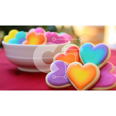 Υπάρχει δυνατότητα προσωποποίησης με δική σας φωτογραφία και προσαρμογής διαστάσεων κατόπιν παραγγελίας. Το συγεκεριμενο puzzle παρουσιαζει Αυτή η εικόνα παρουσιάζει ένα μπολ με πολύχρωμα μπισκότα σε σχήμα καρδιάς τοποθετημένα πάνω από ένα πορτοκαλί τραπεζομάντιλο, στολισμένο με κόκκινες και λευκές καρδιές. Το τραπεζομάντιλο προσθέτει μια γιορτινή πινελιά στο σκηνικό, ενώ διάφορα άλλα μπισκότα, σε διαφορετικά σχήμ