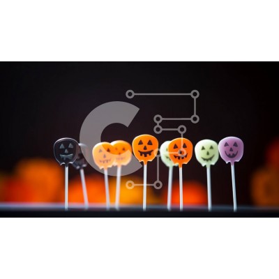 Υπάρχει δυνατότητα προσωποποίησης με δική σας φωτογραφία και προσαρμογής διαστάσεων κατόπιν παραγγελίας. Το συγεκεριμενο puzzle παρουσιαζει Αυτή η εικόνα παρουσιάζει μια σειρά από πολύχρωμα γλειφιτζούρια σε σχήμα κολοκύθας τοποθετημένα σε ξυλάκια. Το φόντο διαθέτει καλαμπόκι καραμέλας, προσθέτοντας στη συνολική οπτική γοητεία. Αυτά τα γλειφιτζούρια μπορούν να χρησιμοποιηθούν ως διακοσμητικά για αποκριάτικα πάρτι ή