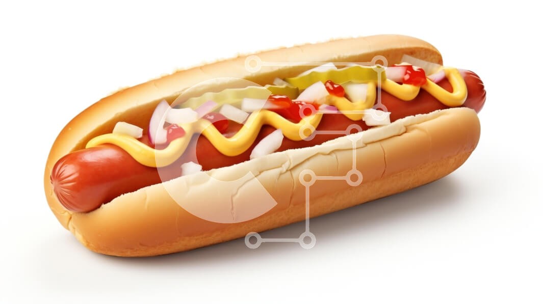 Υπάρχει δυνατότητα προσωποποίησης με δική σας φωτογραφία και προσαρμογής διαστάσεων κατόπιν παραγγελίας. Το συγεκεριμενο puzzle παρουσιαζει Αυτή η εικόνα παρουσιάζει ένα υπέροχο χοτ-ντογκ φωλιασμένο σε ένα μαλακό ψωμάκι, με μουστάρδα, κέτσαπ, ψιλοκομμένα κρεμμύδια και φέτες τουρσί άνηθου. Το χοτ ντογκ τοποθετείται σε καθαρό λευκό φόντο, αναδεικνύοντας τα ζωηρά χρώματα και την υφή του. Το ψωμάκι είναι ελαφρώς φρυγα