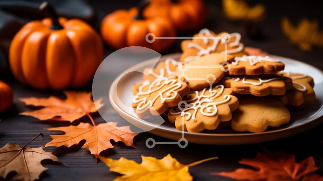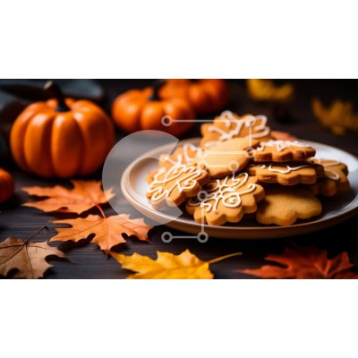 Υπάρχει δυνατότητα προσωποποίησης με δική σας φωτογραφία και προσαρμογής διαστάσεων κατόπιν παραγγελίας. Το συγεκεριμενο puzzle παρουσιαζει Αυτή η εικόνα παρουσιάζει ένα πιάτο γεμάτο με υπέροχα μπισκότα μελόψωμο. Τα μπισκότα είναι όμορφα διακοσμημένα με λευκό γλάσο και έχουν σχήμα μελόψωμο. Στο βάθος, μπορείτε να δείτε κολοκύθες και φύλλα που πέφτουν, προσθέτοντας μια εορταστική πινελιά στη σκηνή. Ένα μοναδικό pu